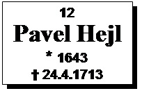 Pavel (12) se tedy narodil v roce 1643. Víme celkem spolehlivě, že první Pavlův syn Václav se narodil roku 1665. Neuděláme chybu, když budeme předpokládat, že první Pavlův sňatek se uskutečnil v r.1664. Narození druhého Pavlova syna Jana už známe naprosto přesně. Bylo to 25.10.1668. Porod asi nebyl bez problémů a Pavlova první žena zemřela. Pavel se ocitl sám s novorozenětem a dalším tříletým děckem. Proto nevyčkal obvyklých dvou let smutku a už 26.1.1670 se oženil s Evou Černou, dcerou Martina Černého z Horních Heřmanic.